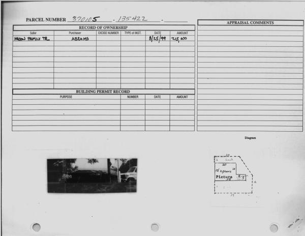 | 3 | 08/25/1999 | WARRANTY D | WARRANTY DEED | MASON FAMILY REV TRUST | CHARLOTTE A ABRAMS | 0 | | $215,000.00 | 199902798 | 1990804326 |