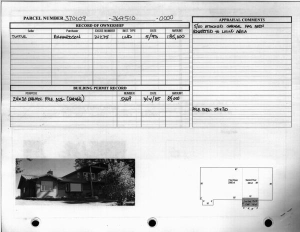 | 7 | 05/13/1993 | WARRANTY D | WARRANTY DEED | GRACE C TUTTLE | MARK I & JANICE O RICHARDSON | 318 | | $185,000.00 | 199321275 | 930518085 |