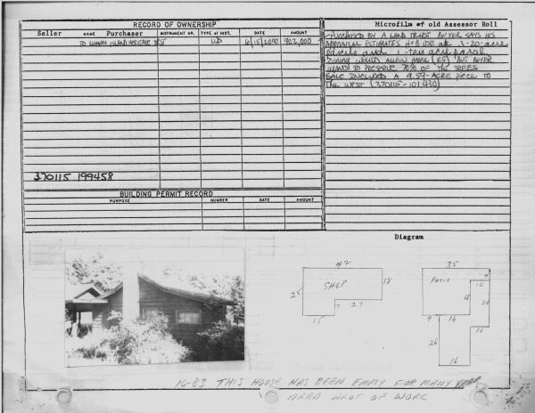 | 1 | 06/15/2000 | WARRANTY D | WARRANTY DEED | PHYLLIS N LOCKWOOD | LUMMI ISLAND HERITAGE TRUST | 0 | | $902,000.00 | 200007589 | 2000602159 |