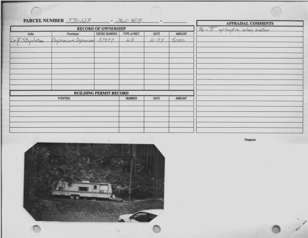 | 2 | 10/15/1993 | WARRANTY D | WARRANTY DEED | LESLIE & AUDREY STAPLETON | SHEILA M-ROBERT B-ROBERT A-DALE A & | 350 | | $8,000.00 | 199301770 | 931025192 |