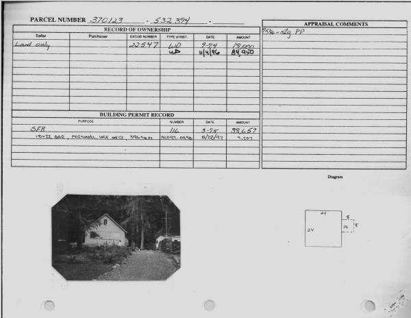 | 2 | 11/01/2006 | WARRANTY D | WARRANTY DEED | JAMES L OLSON | LUMMI ISLAND PINEY COTTAGE LLC | 0 | | $237,000.00 | 2006127769 | 2061100377 |