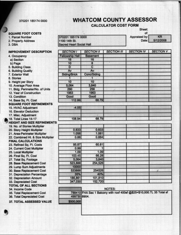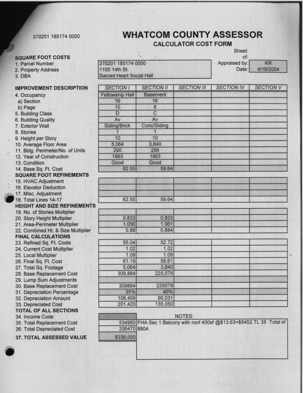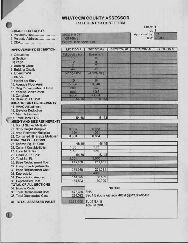 | Avg Floor Area: | 5064 | Cost Section: | 16 | | Exterior Wall: | Brick/Siding | HVAC: | FHA | | LIFE EXPECTANCY: | 35 | Occupancy: | Fellowship Hall | | Table No: | 516 |   |   |