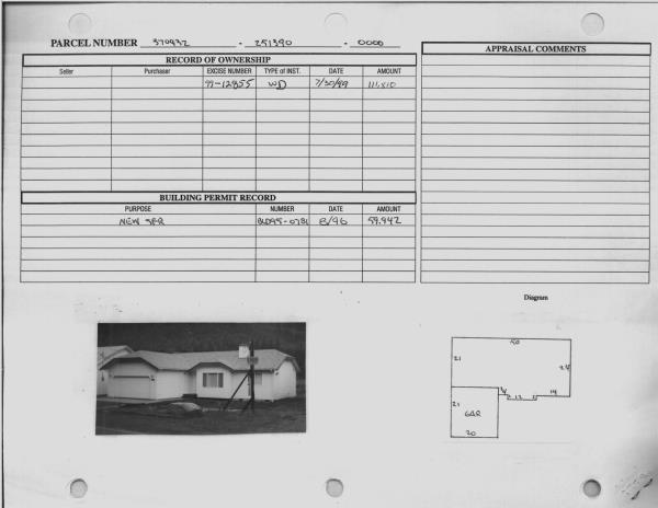| Exterior Wall: | SI/ST | Fireplace: | WD ST-AVG | | Floor Cov Adj: | Base Allowance | Foundation: | CONBL | | Full Baths: | 2 | Heating/Cooling: | F/A | | Number of Bedrooms: | 3 | Roof Covering: | COMP |