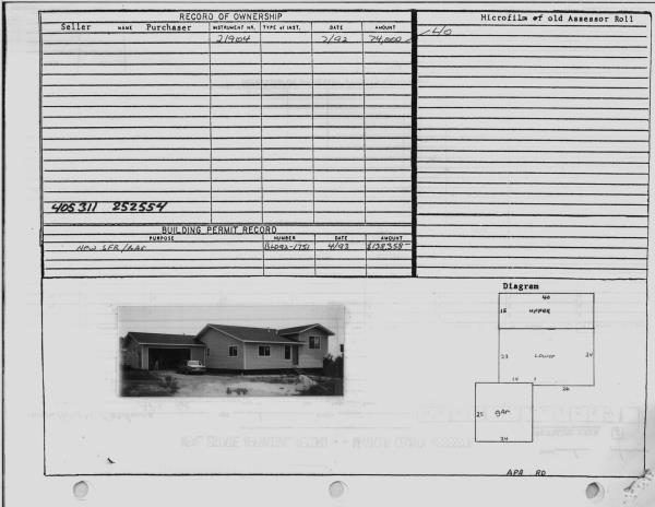 | 4 | 12/22/1988 | WARRANTY D | WARRANTY DEED | R A & MILDRED LEHN | JOANNE JACOBSON | 91 | | $0.00 | 198900185 | 1891625016 |