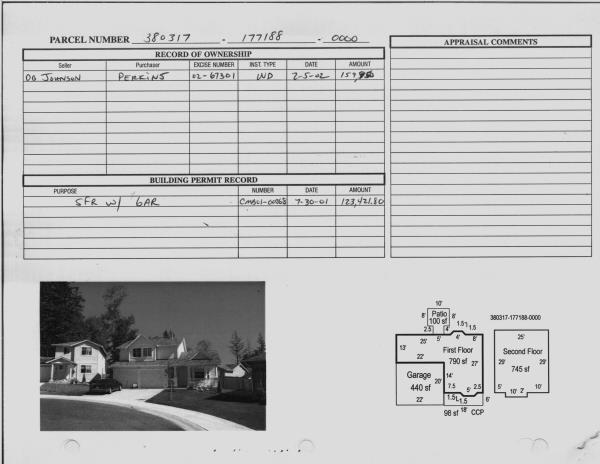 | Exterior Wall: | SI/ST | Fireplace: | SIN 1-FAIR | | Floor Cov Adj: | Base Allowance | Foundation: | CONPR | | Full Baths: | 2 | Heating/Cooling: | F/A | | Number of Bedrooms: | 3 | Roof Covering: | COMP |