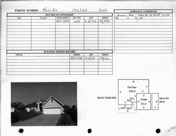 | Exterior Wall: | SI/ST | Fireplace: | SIN 1-FAIR | | Floor Cov Adj: | Base Allowance | Full Baths: | 1 | | Heating/Cooling: | ELBB | Number of Bedrooms: | 2 | | Roof Covering: | COMP |   |   |