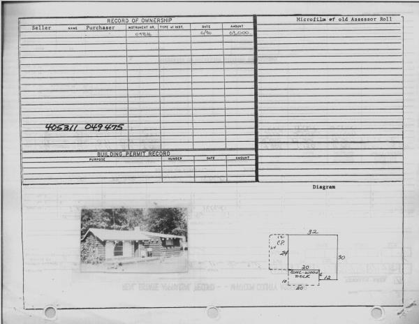 | 3 | 07/11/1989 | WARRANTY D | WARRANTY DEED | WOLFGANG & LAURA SCHADE | JOHN R & ELISABETH D MCLANE | 110 | | $10,000.00 | 198951684 | 1891643801 |